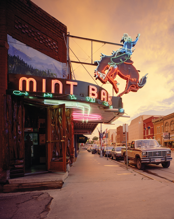 Prohibition as a cigar and soda shop, but the drinking continued in a backroom speakeasy. One can’t miss the Mint Bar on Main Street with its bronc rider neon sign. "