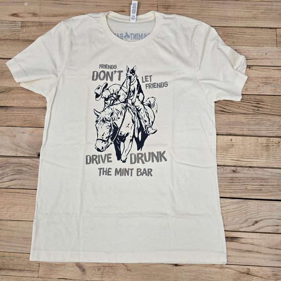 Friends don't let friends drive drunk with a twist. Once again we are bringing you a fun graphic tee in 3 colors. The mint bar logo on the back locker. Black print.